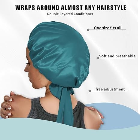 • [Double layer material]: The satin bonnet is designed with double-layer fabric can wrap the hair well, and after using the hair mask, it will not stain the sheets when sleeping.