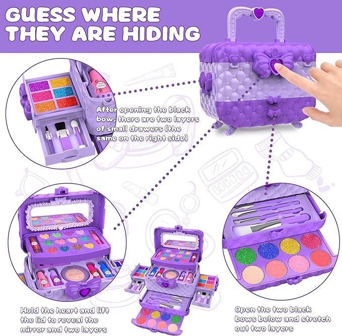 • Encourage Creativity & Entertainment:We designed the kids makeup set not only to satisfy the girl's pursuit of makeup, but also to make the child's relationship with parents and friends closer, to shape and improve the child's creativity, imagination, color perception, aesthetics and hands-on ability, and make them more confident.