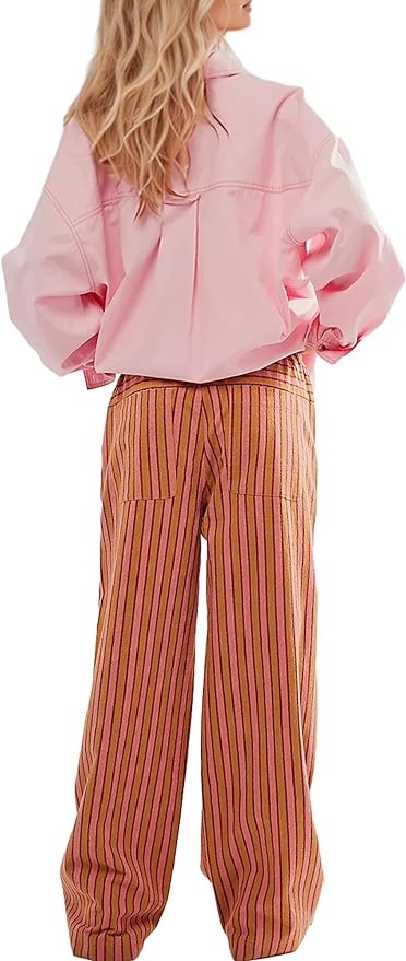 • [Occasions]: Casual wide leg striped lounge pants for ladies, perfect to wear for holiday, vacation, travel, summer, fall, spring, weekend,party, bar, concert, lounge, leisure, street, hanging out, going out, daily life and casual wear.