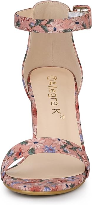 Allegra K Women's Floral Print Open Toe Block High Heels Summer Sandals