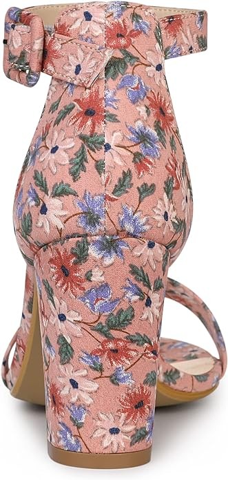 • Block Heel, Cushioned Footbed, Open Toe, Chunky Heel, Adjustable Ankle Strap with Buckle Closure