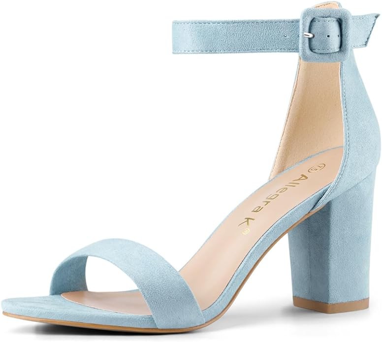 Allegra K Women's High Chunky Heel Buckle Ankle Strap Sandals