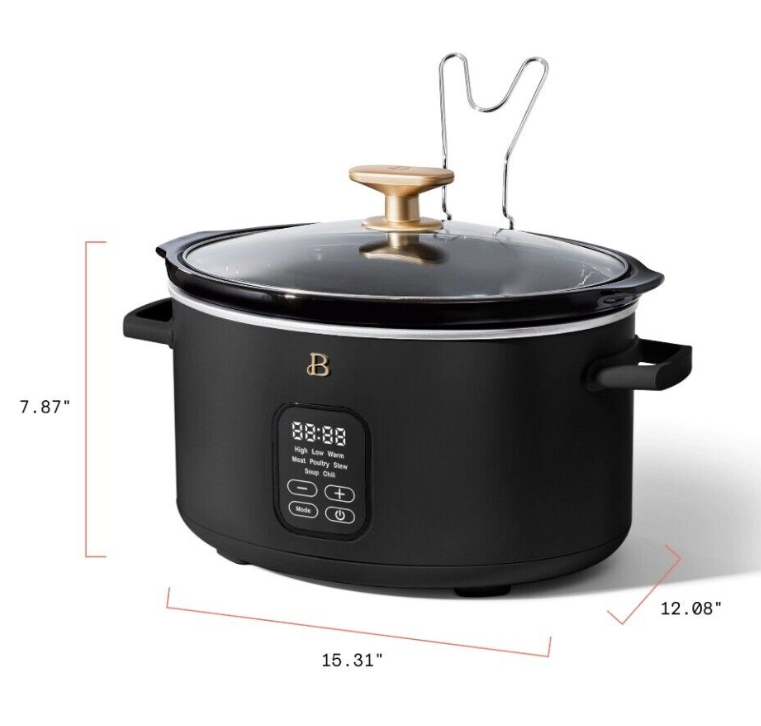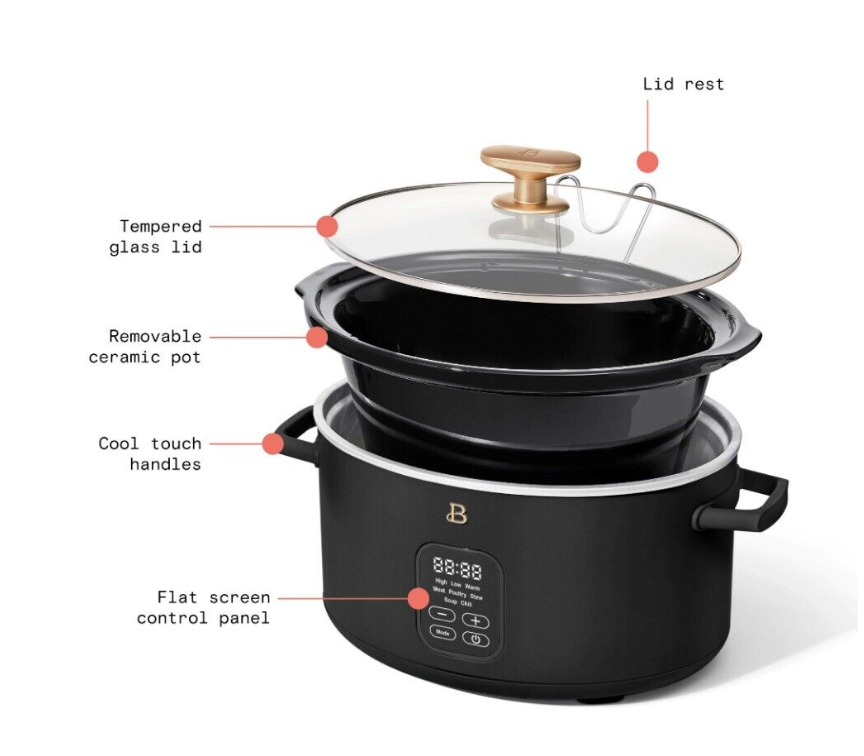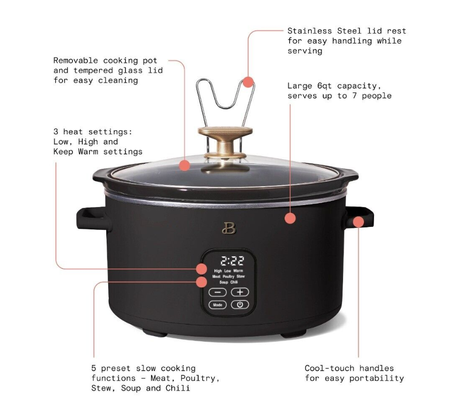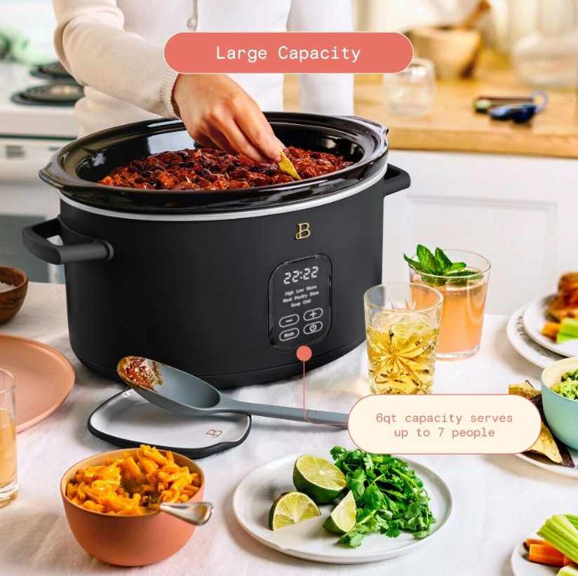 Beautiful 6 Quart Programmable Slow Cooker, Black, Sesame By Drew Barrymore,