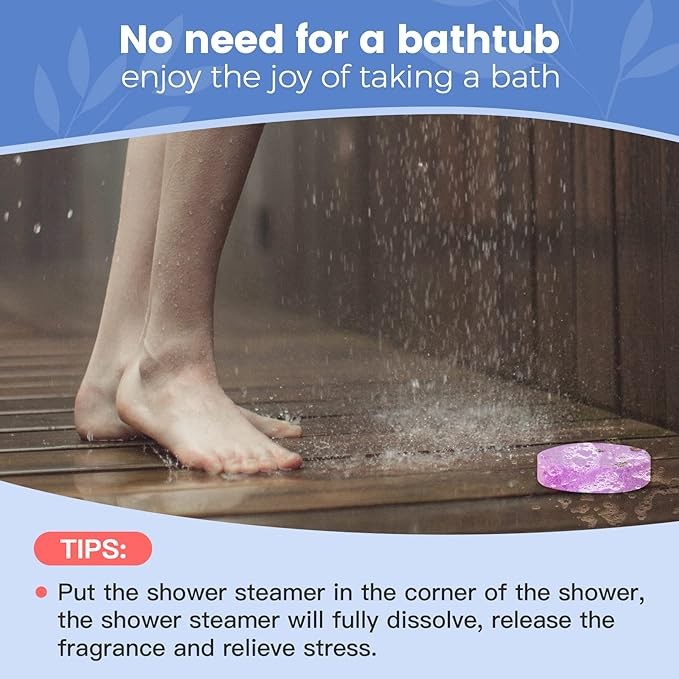 • 【Enjoy SPA at home】You just need to put the shower bombs aromatherapy for women in the corner,let the water splash on the shower tablets, it will emit its aroma.Each shower bomb will last 1-2 showers or more.