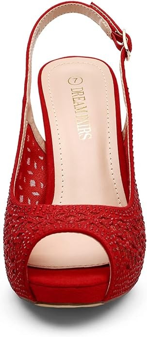 • The Dream Pairs high heel pumps shoes feature decorative rhinestones. The open-toe design and rhombus mesh upper keep your feet cool, fresh and clean