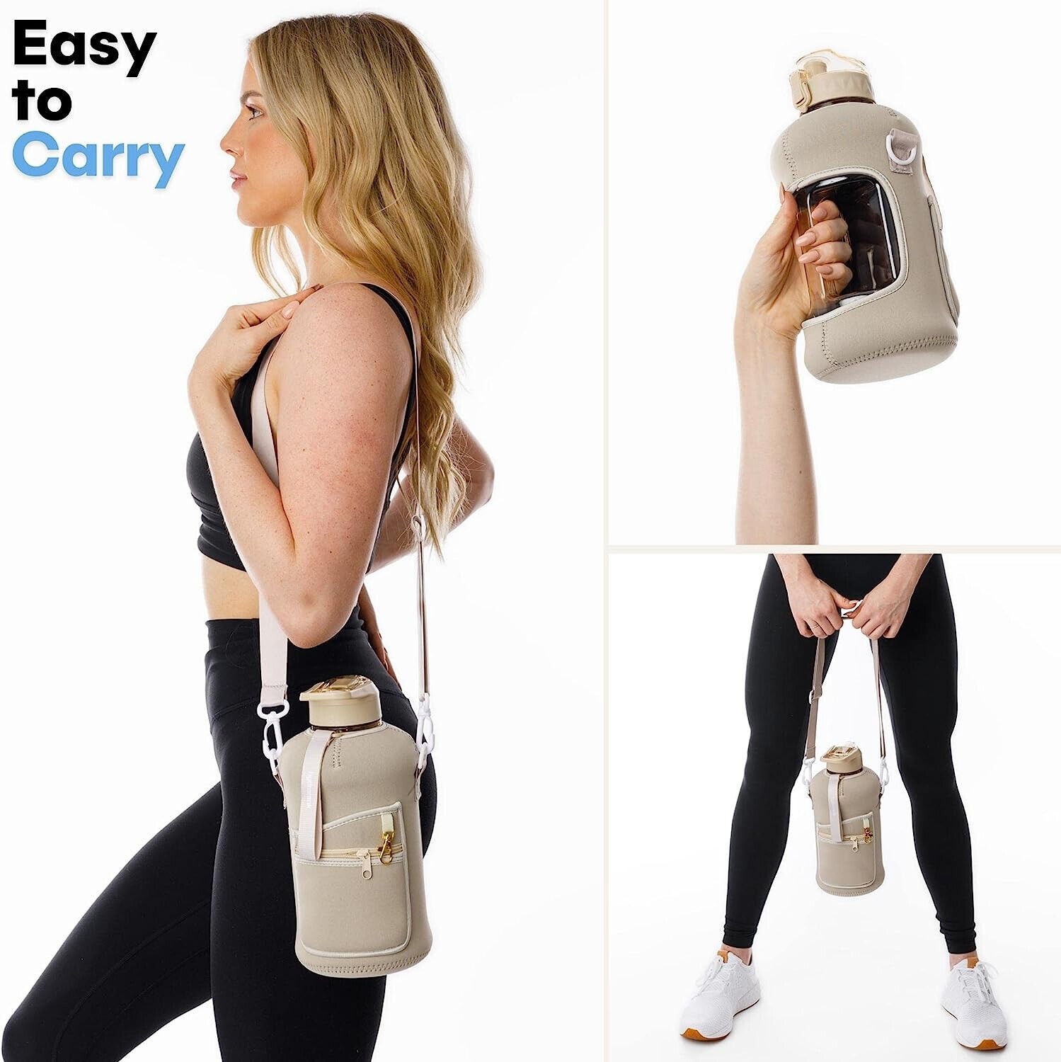 Half Gallon Water Bottle with Storage Sleeve and Straw Lid - 2.2 Liter Large Wat