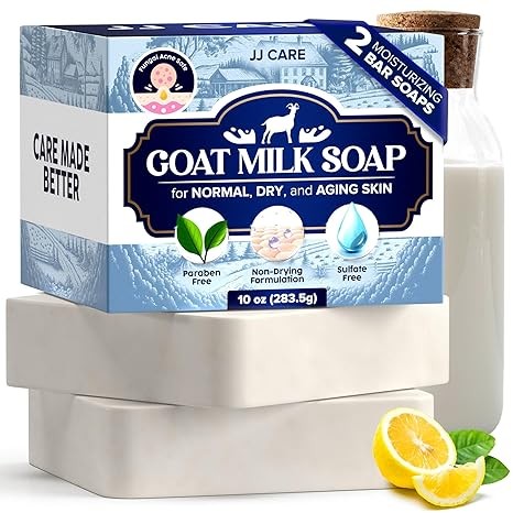 • ✅ GENTLE CLEANSER - The JJ Care Goat Milk Soap cleanses the skin effectively while also soothing dry and irritated skin. Natural soap, such as goat milk, is good for delicate skin because it is free of harsh and toxic ingredients found in conventional soaps. As a result, it is a gentle cleanser that can aid in the preservation of the skin's moisturizer layer.