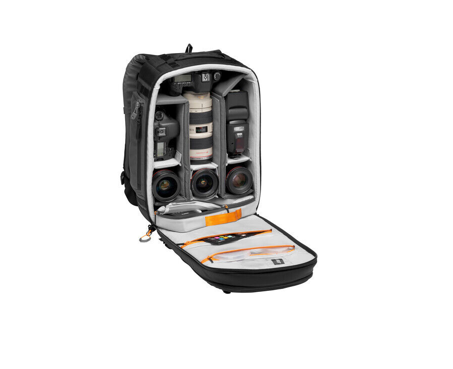 • Attachment webbings along the backpack's sides and on the face of its front panel allow for pouches with the Lowepro SlipLock Attachment System to be connected