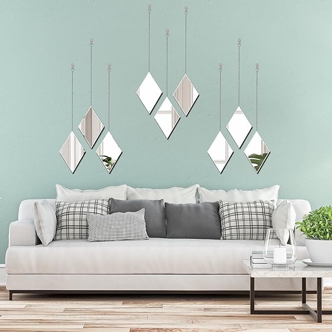 • PRODUCT SIZE:8X13X0.4 inches Diamond shape Decorative Wall Mirror.Set of 3,Hanging Chain Mirror.8X13inches,Small Decor Mirror.