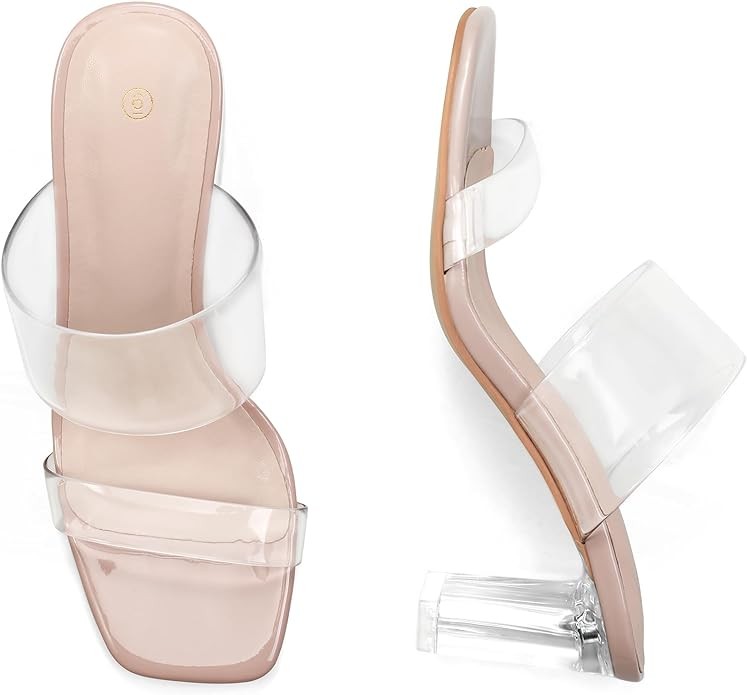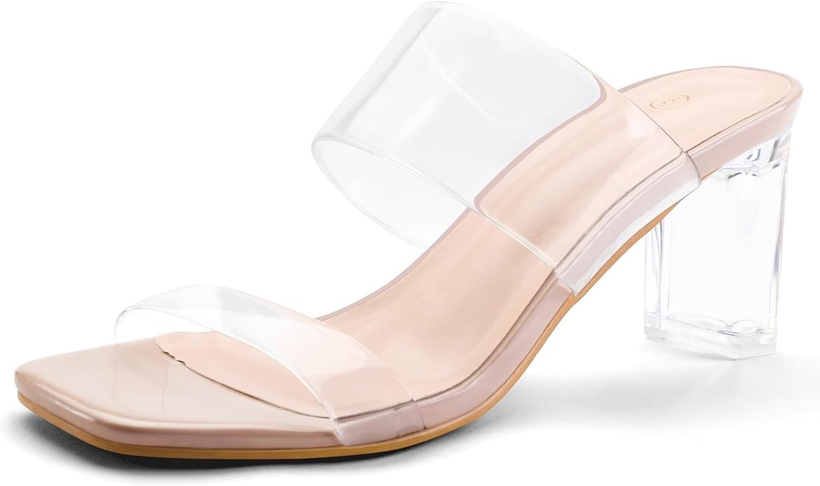 【Stylish Square Toe】These women's clear high heels feature a stylish and timeless square toe shape, showcasing the grace and beauty of women. The open-toe design and block heel make them adorable wedding shoes.