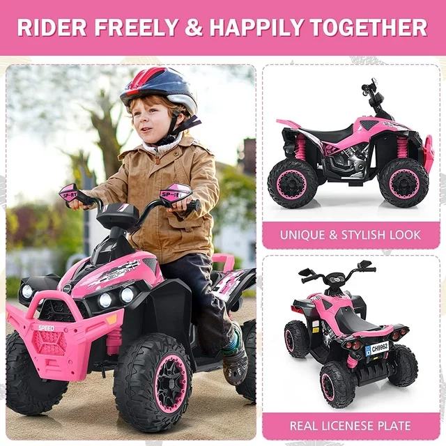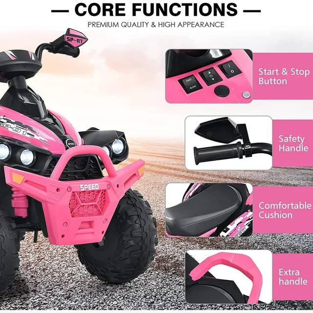 • SLOW START IS SAFER: The ATV 12V seat has a one-button start function which includes high and low speed. Kids can start at a slow speed when starting a super simple operation, so that children drive more safely. In addition, four large diameter wheels increase the stability of the ATV.