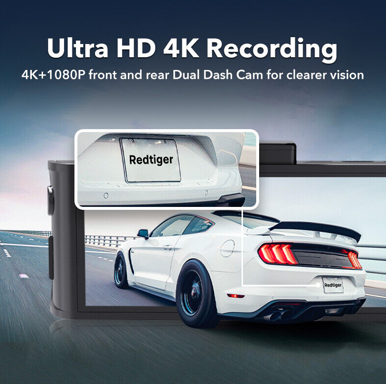 [Ultra HD 4K+1080P Dual Dash Cam] Featuring top quality 4K front camera and 1080p rear cam, the REDTIGER dashcam is able to capture more detailed images, including street signs and license plates. Additionally, with wide-angel camera, the dashcam is with extended views and less blind spots.