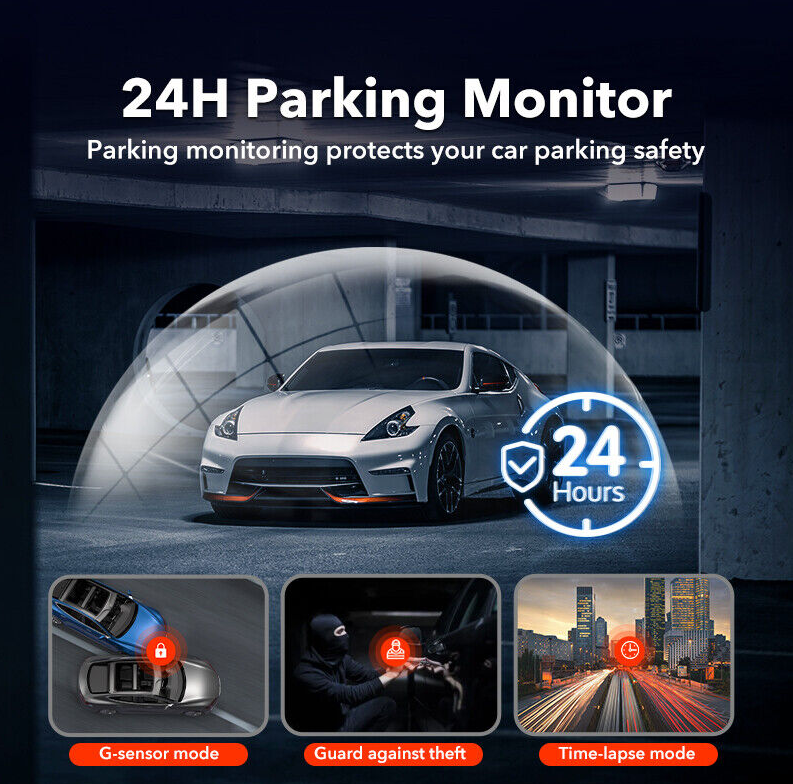 [24H Non-Stop Parking Monitor] When detects collision of intrusion, the built-in G sensor will trigger the F7N dashcam to record a video for 15s and lock the video footage. The camera also keeps monitoring the surrounding environment under time lapse mode to ensure the safety of your vehicle (dedicated hardware kit plugged in required).