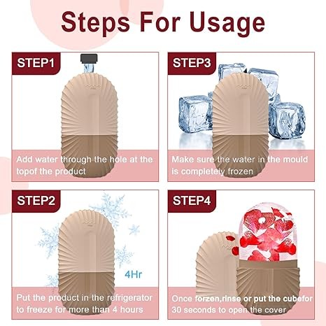 • Customize Your Preferences - Facial ice roller can enhance the skin care effect as per your creativity and customized formula according to your specific skin needs, such as lemonade for whitening, and coconut for improving skin. Even you can use a juicer to squeeze them into juice, then add water, essential oils, and roses to the ice tray.