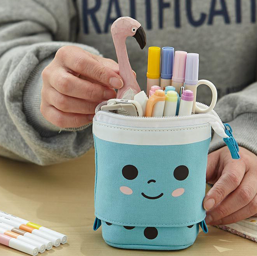 Cute Milk Tea Pen Bag Telescopic Pen Holder Stand-up Stationery Pencil Case