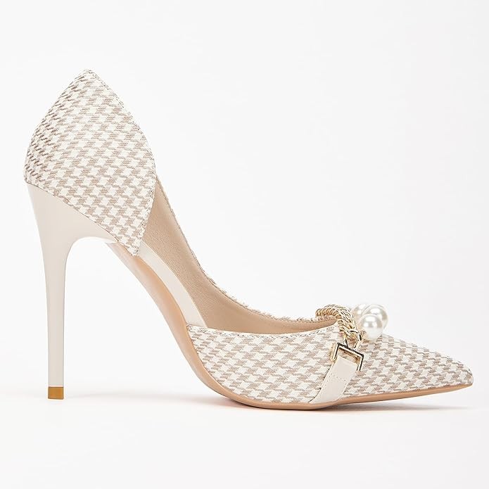 • Leg-Enhancing Design: Our Houndstooth Check High Heels are thoughtfully designed to enhance and flatter the shape of your legs. The combination of the houndstooth check pattern, side cutouts, and slim silhouette works harmoniously to create a visually appealing effect that draws attention to your legs. These heels are the perfect accessory to showcase your legs in a flattering and stylish manner.