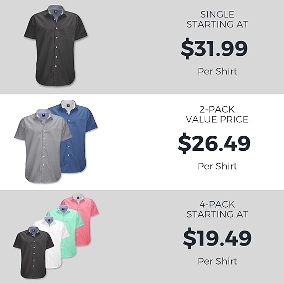• Men's Casual Button-Down Shirts – Every order of our big and tall men's short sleeve dress shirts come with two great options to fit your business or relaxed lifestyle including black,grey, navy and white color Combinations
