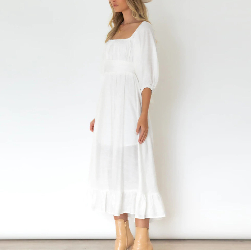 3. Puff Sleeve: This dress is designed with half sleeves and puff sleeves, which can cover the excess flesh of your arms and add a lovely feeling for you.