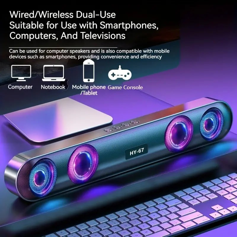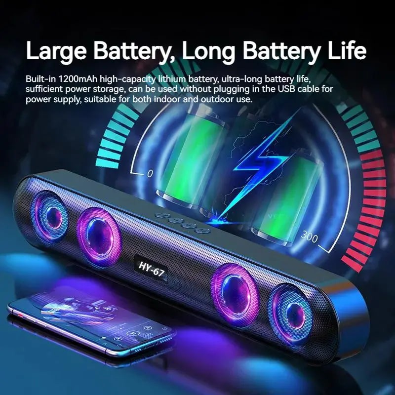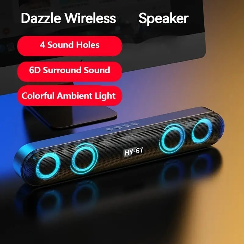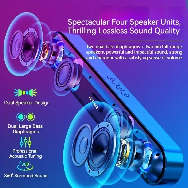 Wireless Speaker, 4 Sound Holes, 6D Surround Sound, Shocking Heavy Bass, RBG Color, Long Strip, Easy To Store And Save Space, Desktop Audio/computer Speaker/car Speaker/cycling Speaker/camping Speaker