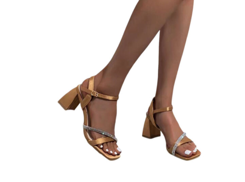 1. Features: Heeled Sandals for Women, Open toe, Cross-strap, Rhinestone on strap, Ankle Strap Buckle, High Block Heel, Chunky Heel.