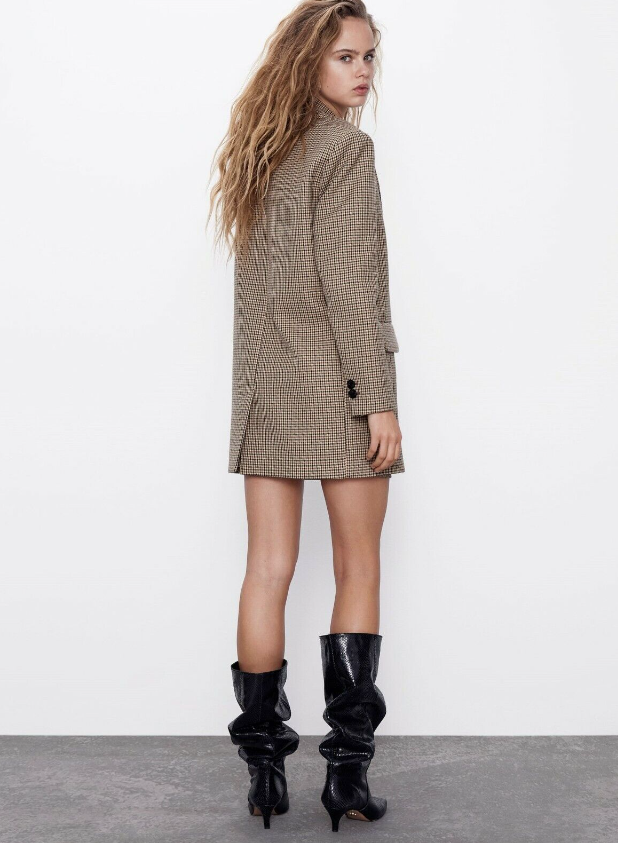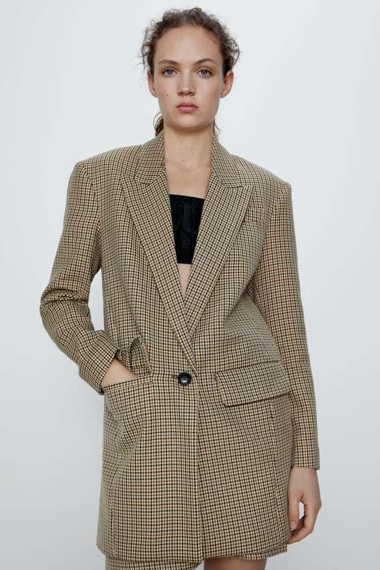 CHECK MASCULINE-STYLE BLAZER IN A CAMEL BROWN & BLACK COLOUR